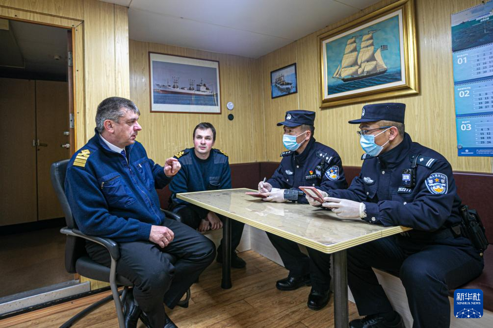 2月3日凌晨2點風停了,“沃爾”輪緩緩??吭诖筮B遼漁深水碼頭五區,張勝第一時間登輪、人證對照、手續查驗,船體檢查……一氣呵成,細致且仔細。