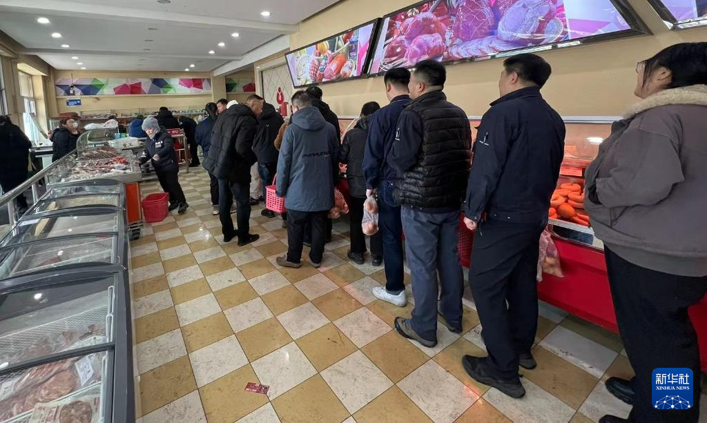 消費者在沈陽市鐵西區排隊購買雞架等食品。 新華社記者 洪可潤 攝