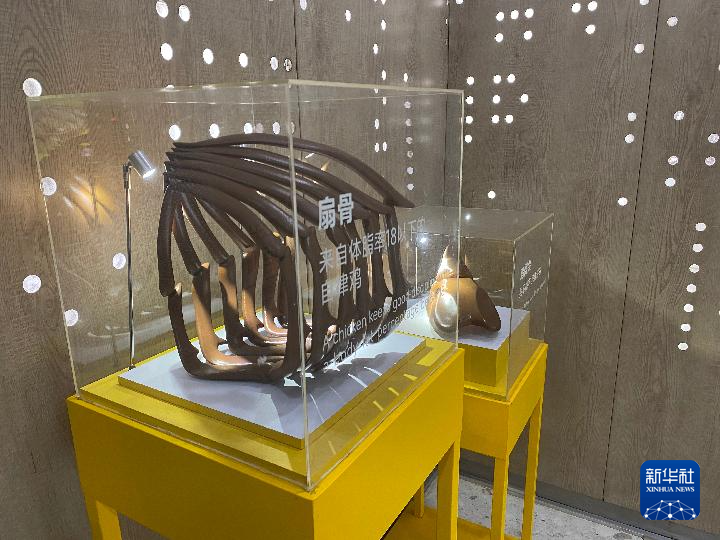 在鐵西廣場地鐵站的地下通道里,袖珍的雞架“博物館”展示了雞架的扇骨等部位。 新華社記者 王炳坤 攝