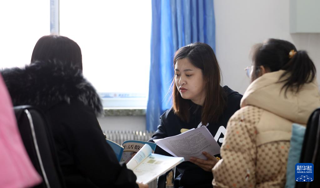 2月29日,鳳城特殊教育學校的老師趙閱和數學組其他老師在集體備課。新華社記者 姚劍鋒 攝pagebreak