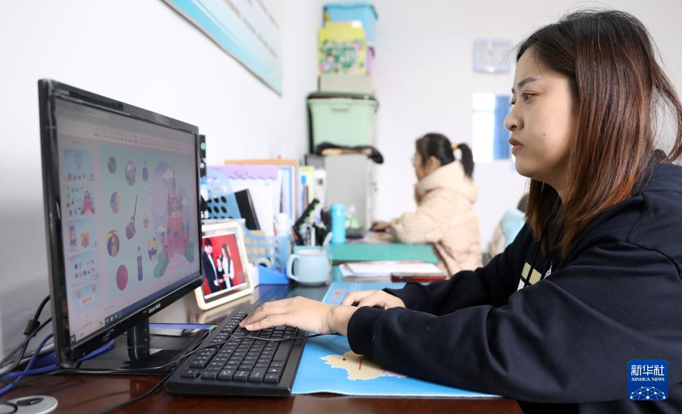 2月29日,鳳城特殊教育學校的老師趙閱在辦公室準備上課課件。新華社記者 姚劍鋒 攝
