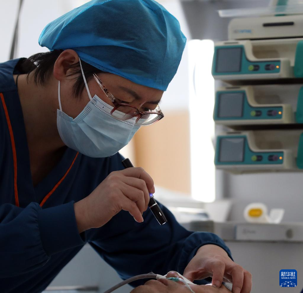 3月7日,曾艷紅在ICU病房內查看一名剛進入ICU的危重患者的體征。新華社記者 姚劍鋒 攝