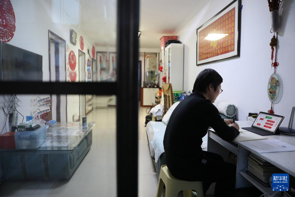 3月5日,曾艷紅在自己家中觀看有關重癥監護的網課學習資料。新華社記者 姚劍鋒 攝pagebreak