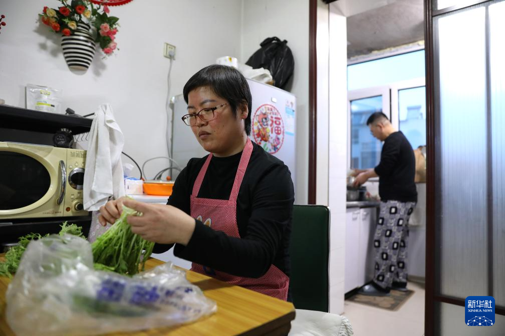 3月5日,曾艷紅和丈夫何金波在自己家中準備晚飯,丈夫何金波是恩良醫院泌尿外科醫生。新華社記者 姚劍鋒 攝pagebreak