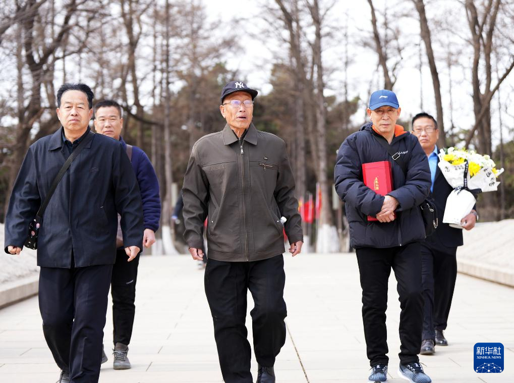 4月3日,史榮升(中)等人到沈陽抗美援朝烈士陵園祭奠親人。新華社記者 李鋼 攝