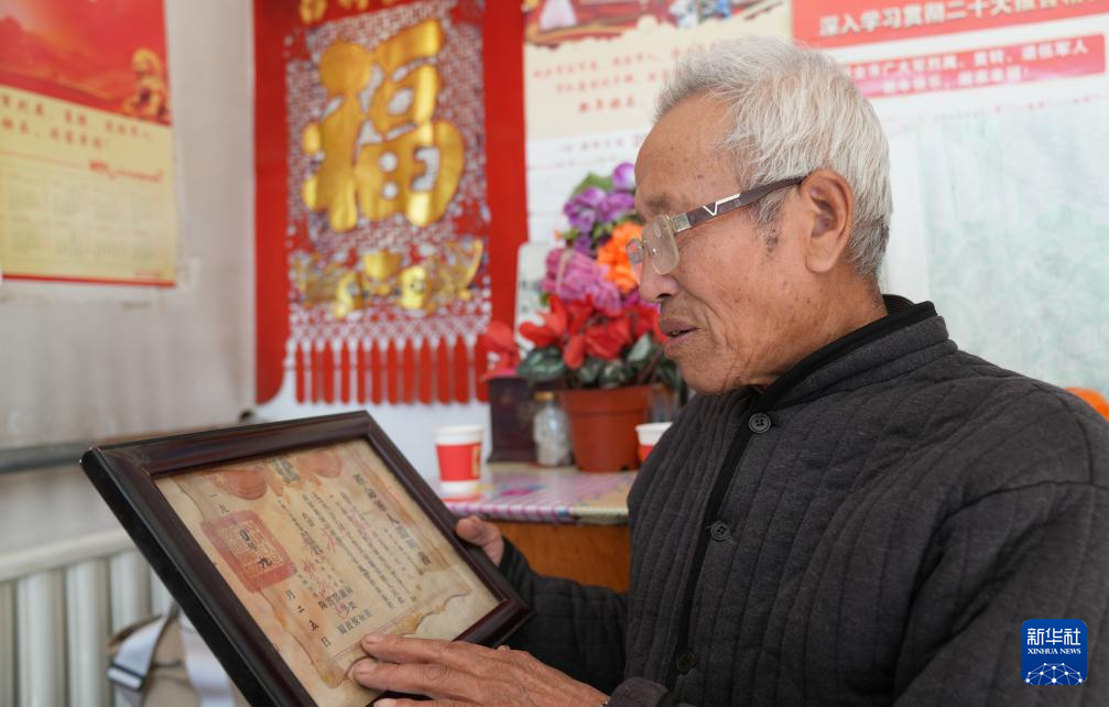 2023年11月30日,史榮升在家翻看父親的革命軍人證明書。新華社記者 范世輝 攝
