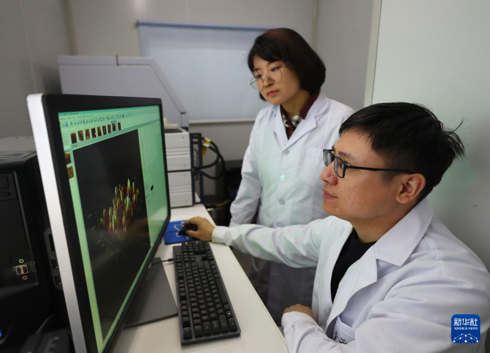 4月3日,在位于沈陽農業大學的土肥高效利用國家工程研究中心實驗室,工作人員對土壤樣品進行觀察分析。新華社記者 楊青 攝