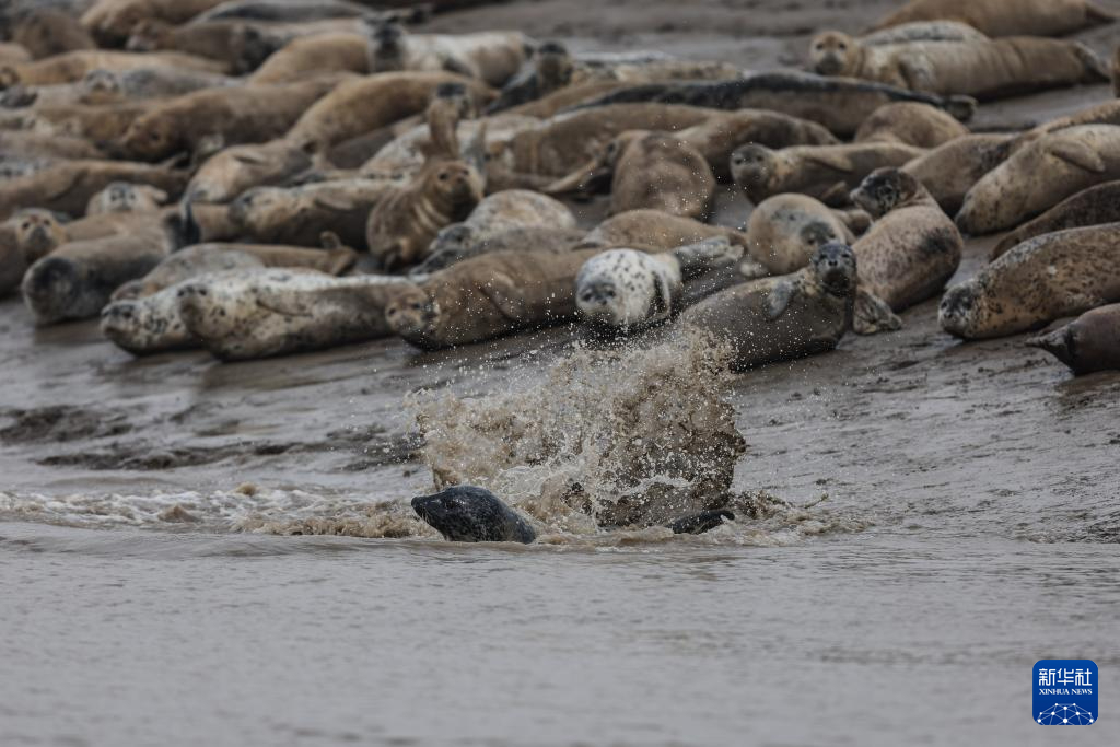 4月9日,西太平洋斑海豹在遼寧盤錦三道溝海域活動。新華社記者 潘昱龍 攝pagebreak