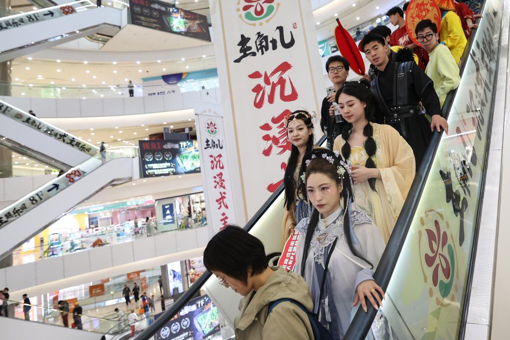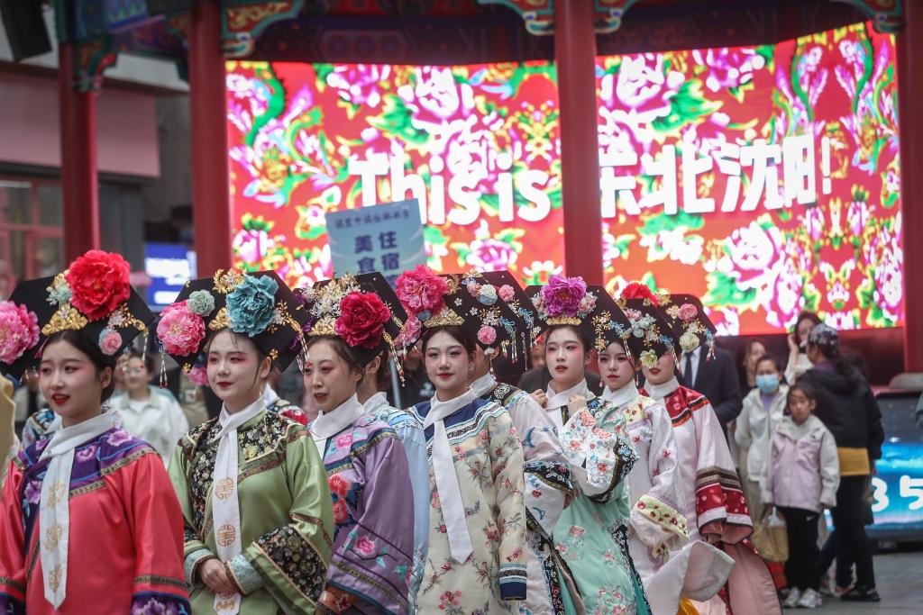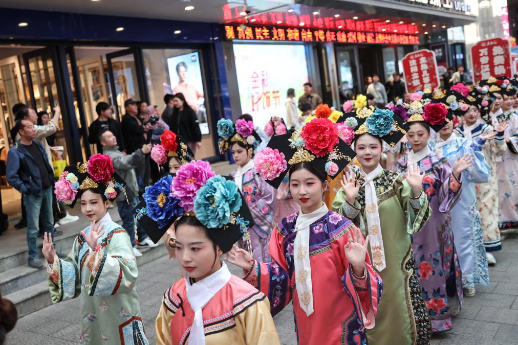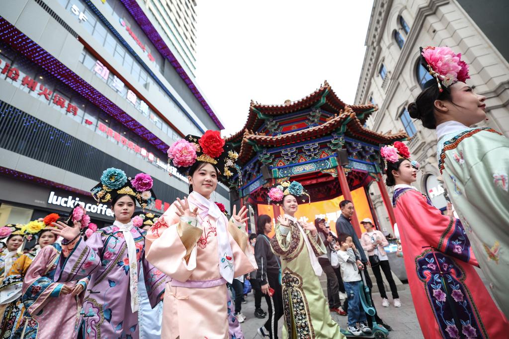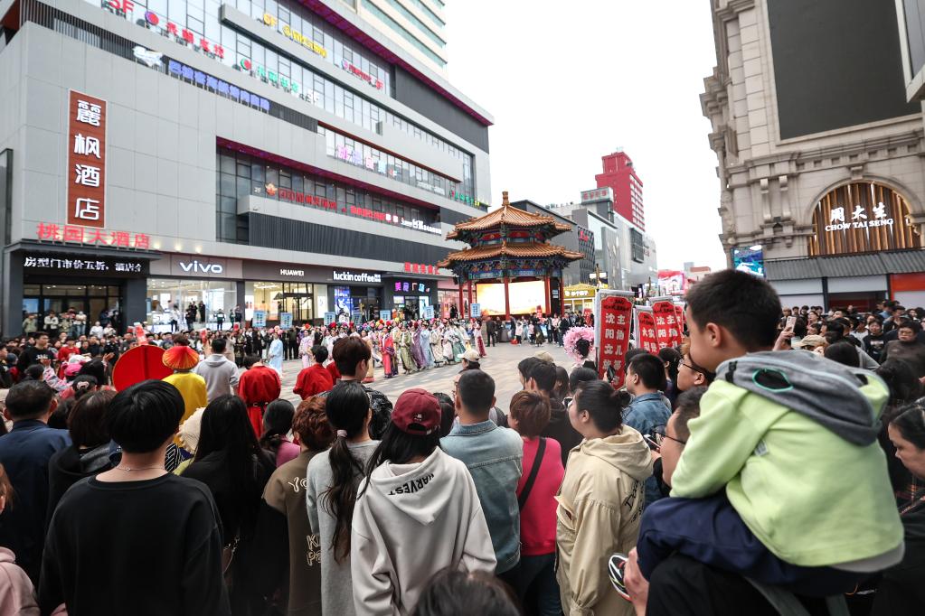 新華網沈陽4月28日電 (記者 潘昱龍)4月27日,一支身著古裝服飾,與路人熱情互動的巡游隊伍在沈陽市中街引起市民駐足拍照、互動。這些演員來自于沈陽市大東區“主角兒古風主題樂園”,巡游活動中他們與市民、游客熱情互動,還現場為大家表演精心設計的舞蹈?!爸鹘莾汗棚L主題樂園”是一家坐落在沈陽大東區龍之夢商圈的沉浸式主題樂園。這里為游客提供一系列國潮古風沉浸式角色扮演和大型娛樂項目互動體驗游戲,讓游客們能夠身臨其境地穿越時空,感受到做“主角兒”的滋味。遼寧兩個舞蹈作品《簪花仕女》《清風徐來》在網絡爆火,五一期間“主角兒古風主題樂園”結合舞蹈中的元素,設計了萬人簪花節的活動,結合室內大型娛樂項目設施,或將成為沈陽五一期間旅游打卡新去處。