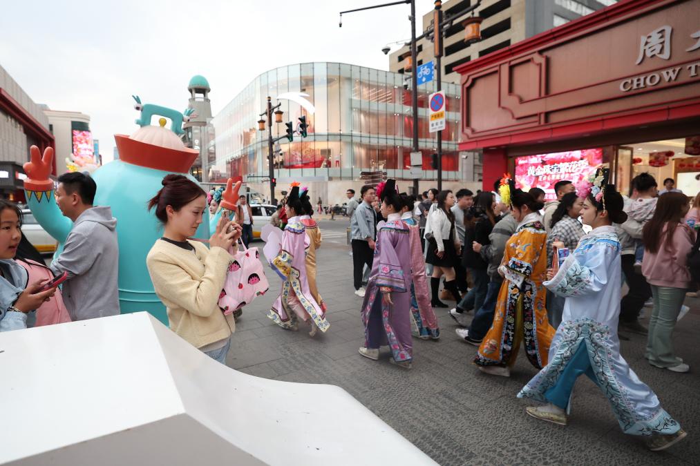 4月27日,市民在沈陽中街拍攝巡游活動。新華社記者 潘昱龍 攝