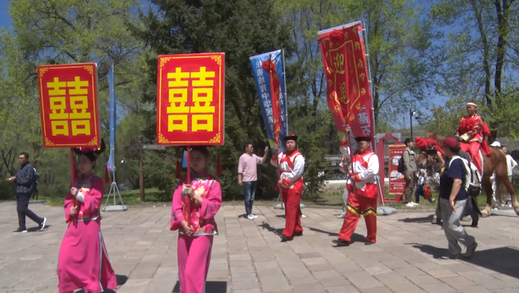 遼寧省新賓滿族自治縣被稱為滿族故里,這里的赫圖阿拉城是后金開國第一都城?!拔逡弧逼陂g,滿族歌舞表演、仿努爾哈赤登基大典展演、熱鬧的滿族婚禮等在這里輪番上演,令人目不暇接。浩浩蕩蕩的迎新親隊伍從塔克世故居出發,一路走到汗宮大衙門,跨馬鞍、過火盆、邁雙斗……許多游客還坐到轎子里沉浸式體驗了一把滿族婚禮。