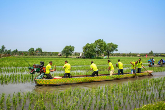 農民在水稻田中賽龍舟。新華網發 李永宏攝