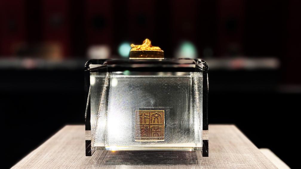 展覽展出的“文帝行璽”龍鈕金印吸引了眾多參觀者駐足。展覽策展人、大連博物館館長姜曄說:“此印為方形,飾龍鈕,在南越文王墓墓主胸部發現,印面有田字界格,陰刻篆書‘文帝行璽’四字,書體工整、剛勁有力。印鈕為一條游龍,龍首伸向印臺一角,龍鱗及爪是鑄后鑿刻的。該印是南越文王的官印?!?/p>