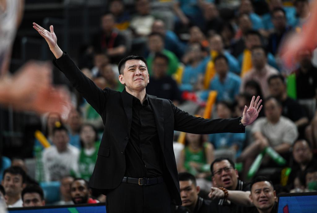 5月22日,遼寧隊主教練楊鳴在總決賽第四場比賽中在場邊指導。新華社記者 王菲 攝