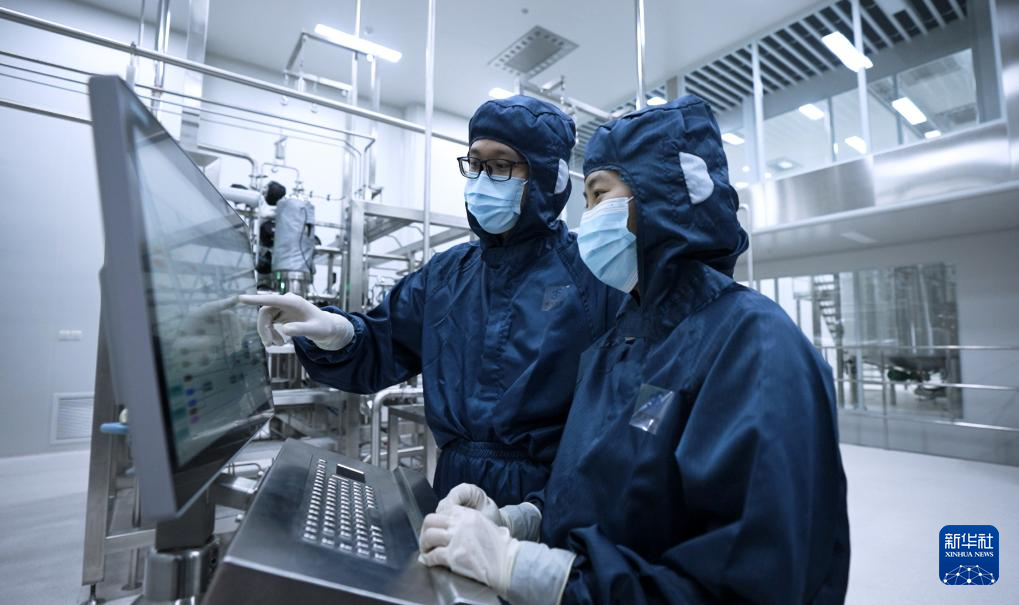 工藝工程師在北方藥谷德生生物醫藥產業園一期抗體原液車間工作(資料照片)。新華社發
