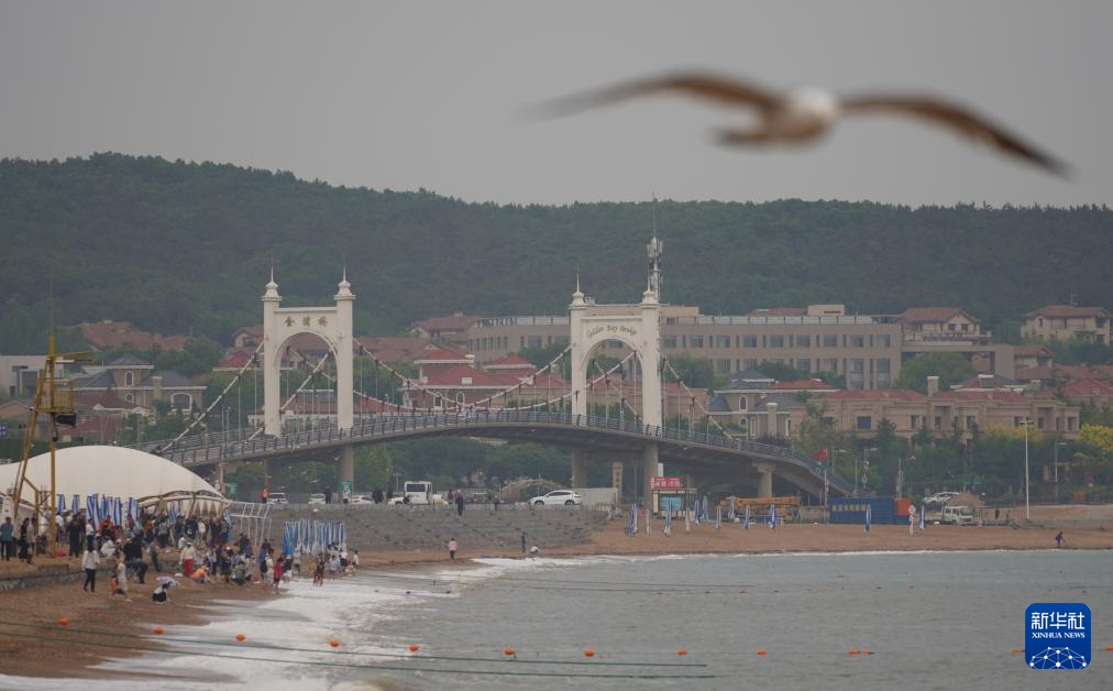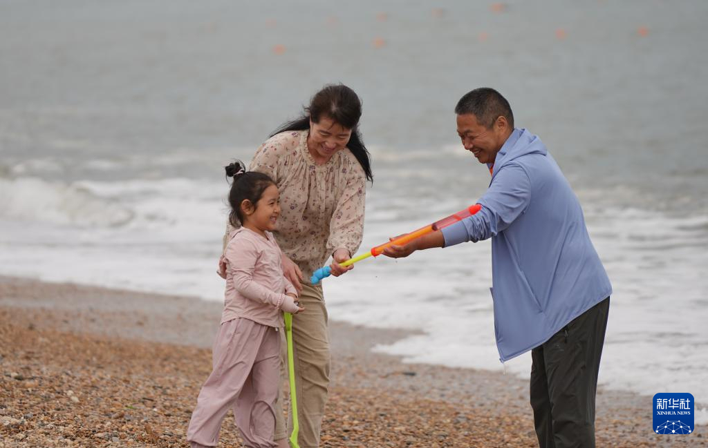 6月14日,小朋友在大連老虎灘漁人碼頭游玩。新華社記者 樊雨晴 攝pagebreak