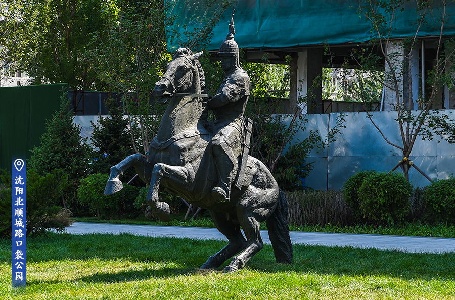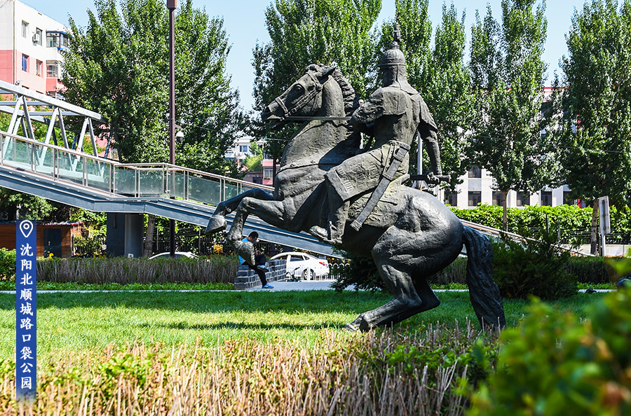 在生態停車場西側,還新建一處口袋公園,草坪之上,一尊執刀立馬的勇士雕像格外顯眼,其整體形態栩栩如生,不僅表達了沈陽這座城市的歷史故事,還展示著沈城人民的奮斗和力量。