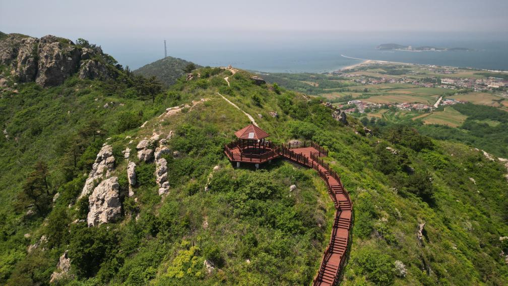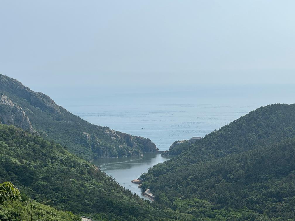 白霧終散,登臨海拔近250米的老鐵山森林公園,萬千氣象,令人心曠神怡。在這座島的制高點眺望,景區群山環繞,三面環海;兩山之間的仙女湖更像是流進山里的海洋。
