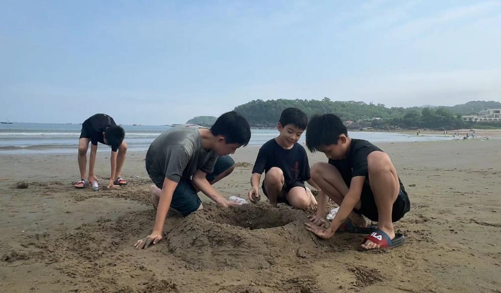 夕陽落進平靜的海灣,暮歸的漁船三三兩兩,給這座本就安靜的小島帶來了獨特的美好。岸邊,孩子們挖沙,嬉戲喧鬧;大人們露營,一杯啤酒,幾根烤串,暫時遠離了都市的喧囂。一群玩耍的孩子對記者說:“這里的海邊不擁擠,玩得盡興?!?/p>