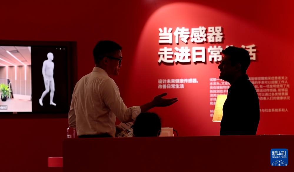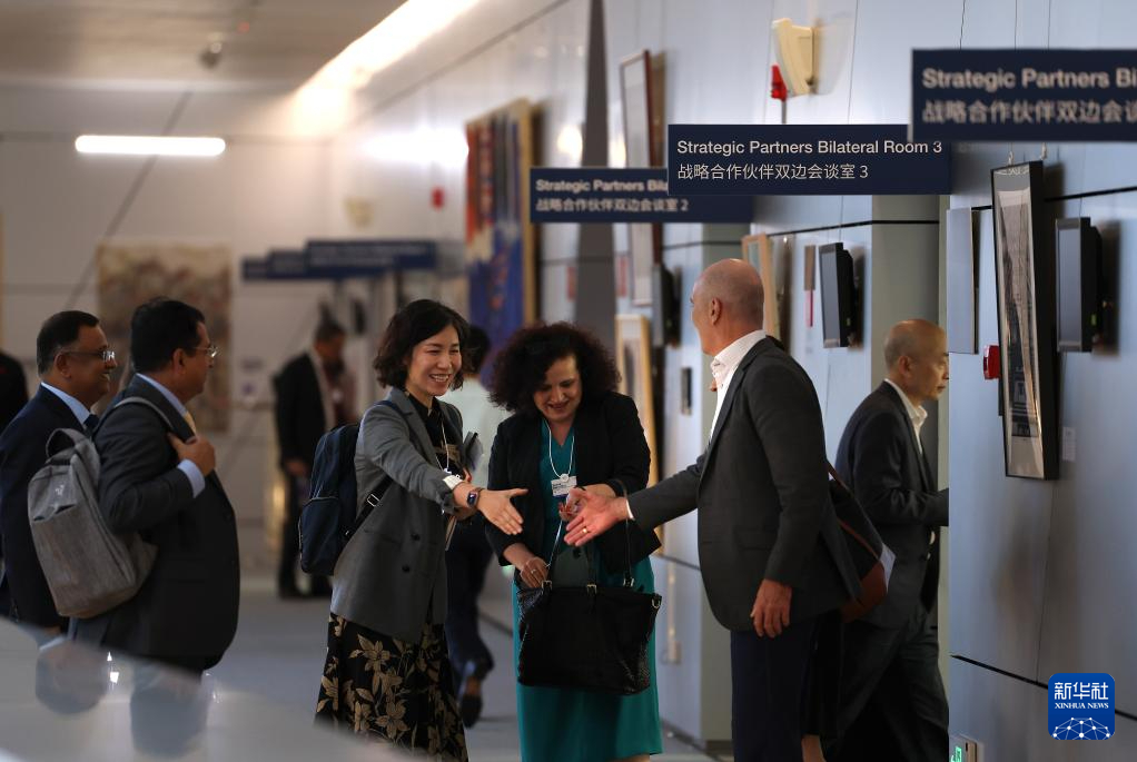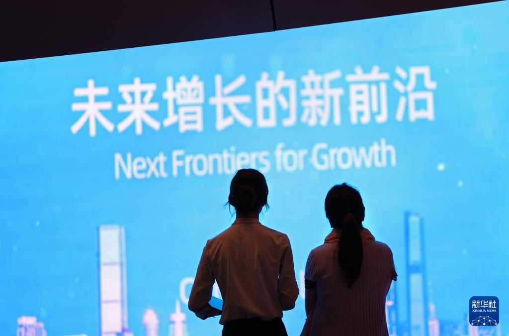 6月25日,兩位嘉賓在夏季達沃斯論壇主會場大連國際會議中心展示區交流。新華社記者 姚劍鋒 攝pagebreak