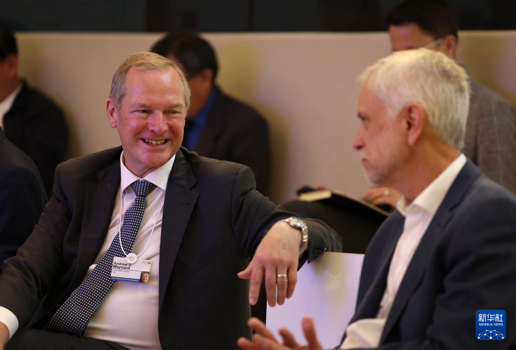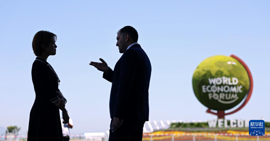 6月26日,兩位嘉賓在夏季達沃斯論壇主會場大連國際會議中心外交流。新華社記者 姚劍鋒 攝