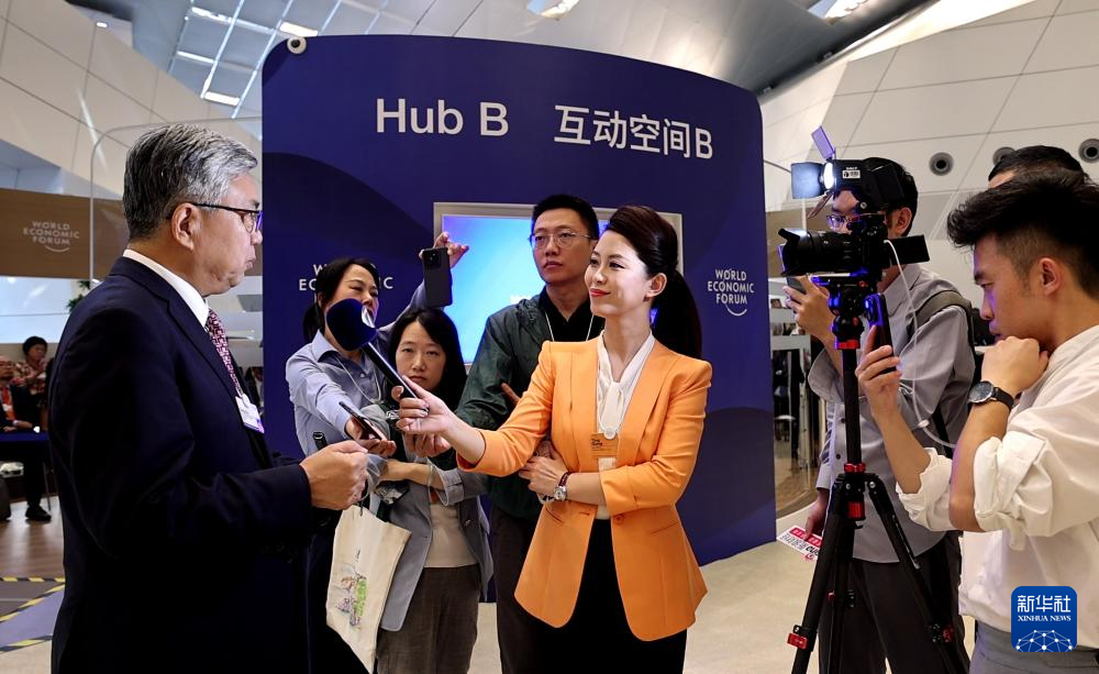 6月26日,一位嘉賓在夏季達沃斯論壇主會場大連國際會議中心接受媒體采訪。新華社記者 姚劍鋒 攝pagebreak