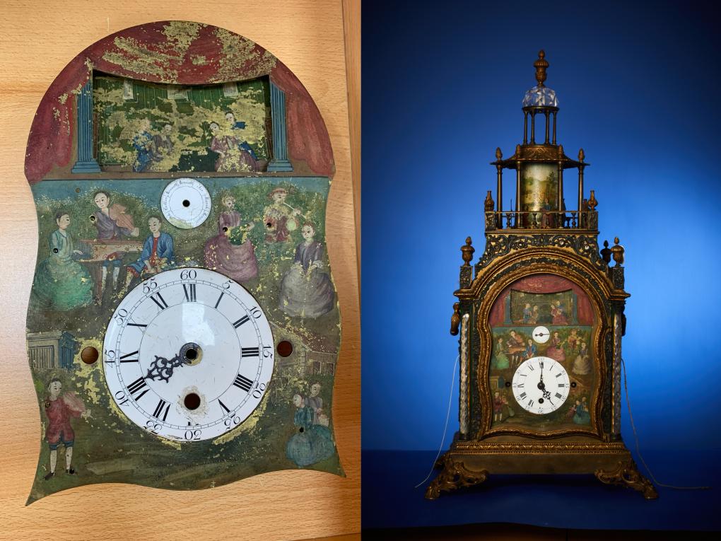 褶皺平整、折痕修復、緩蝕處理、機芯拆解,多項文保技術讓文物“重獲新生”……展覽還通過“清杏黃緙絲金龍雙喜字女朝袍”“清玄燁行書臨董其昌軸”“清銅鍍金松棚果罩”“清銅鍍金嵌料石轉人亭式鐘”等重點修復案例展示沈陽故宮博物院文保工作的發展與進步。
