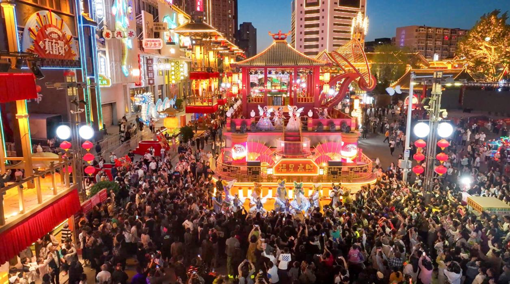 藍色和赤金色的鳳凰在空中盤旋,跟隨其后的紅色巨龍擺動著矯健的身姿,引來游客們的陣陣贊嘆……走,晚上去老北市看“鳳凰”,越來越多人正用這種方式打卡沈陽。