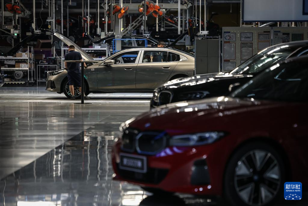 5月8日,工人在華晨寶馬汽車有限公司大東工廠生產線上工作。