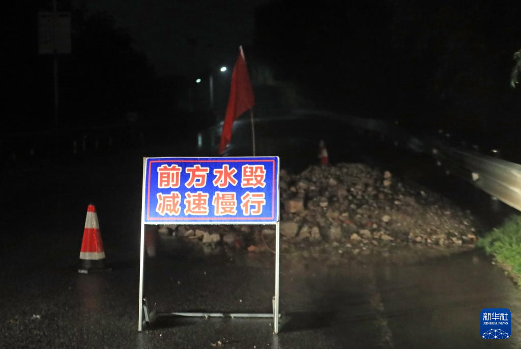 8月20日,在建昌縣通往雷家店鄉的道路上,交通部門豎立警示牌提示過往車輛。新華社記者 楊青 攝