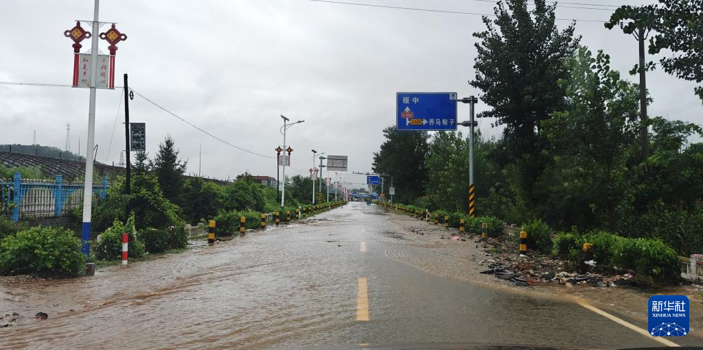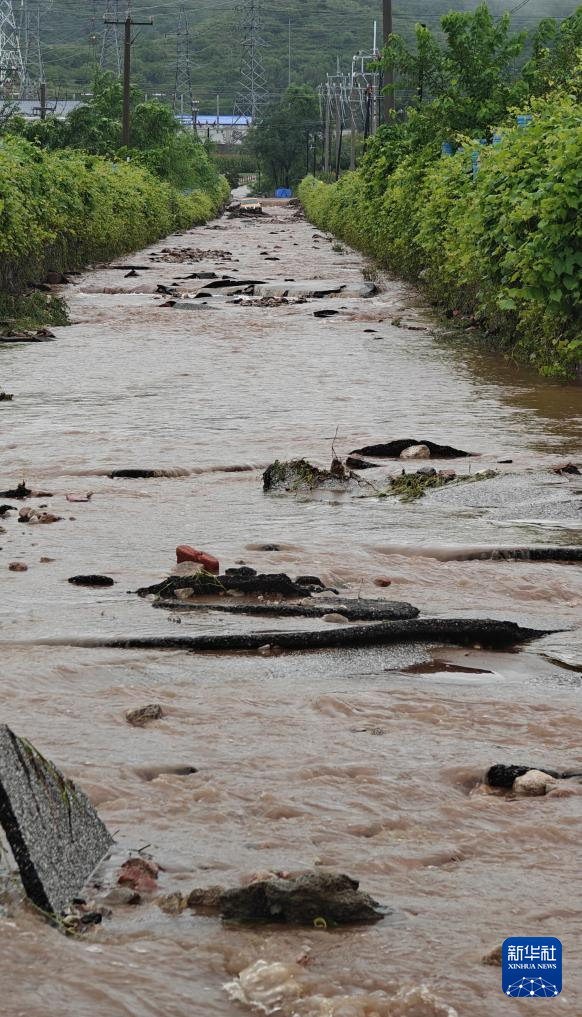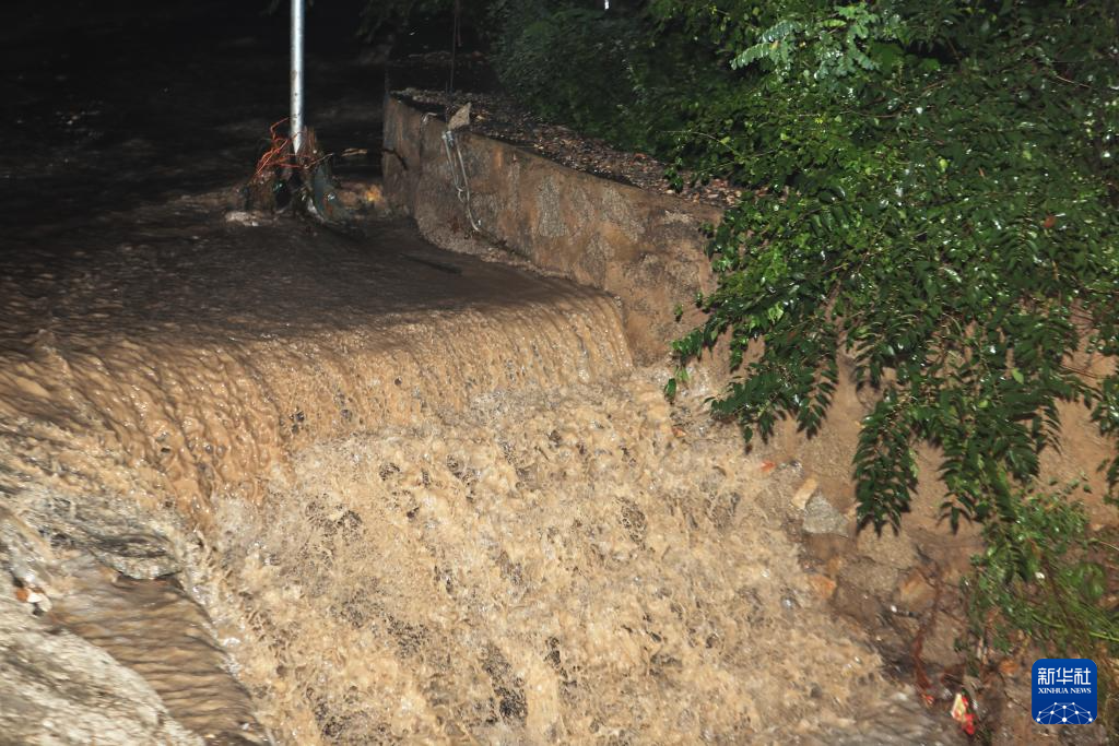 8月20日,在建昌縣通往雷家店鄉的道路上,積水從山上流下。新華社記者 楊青 攝
