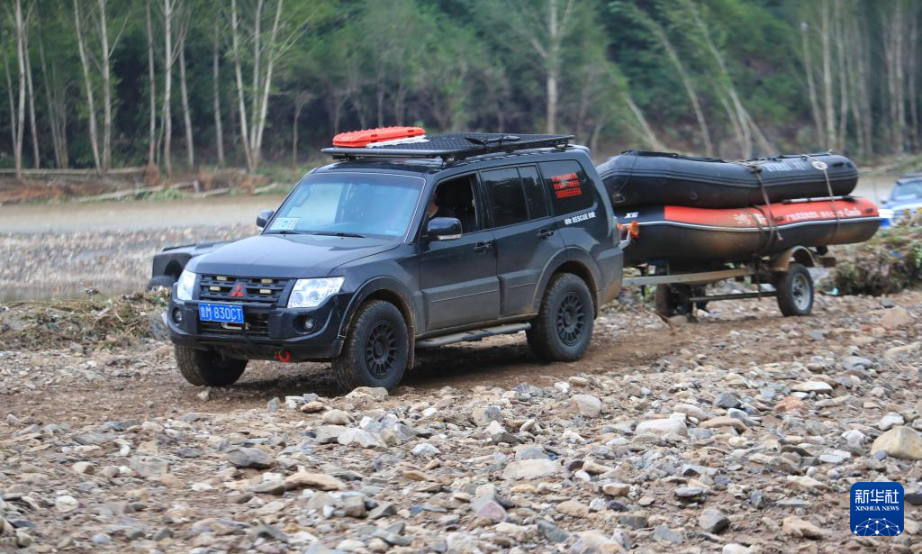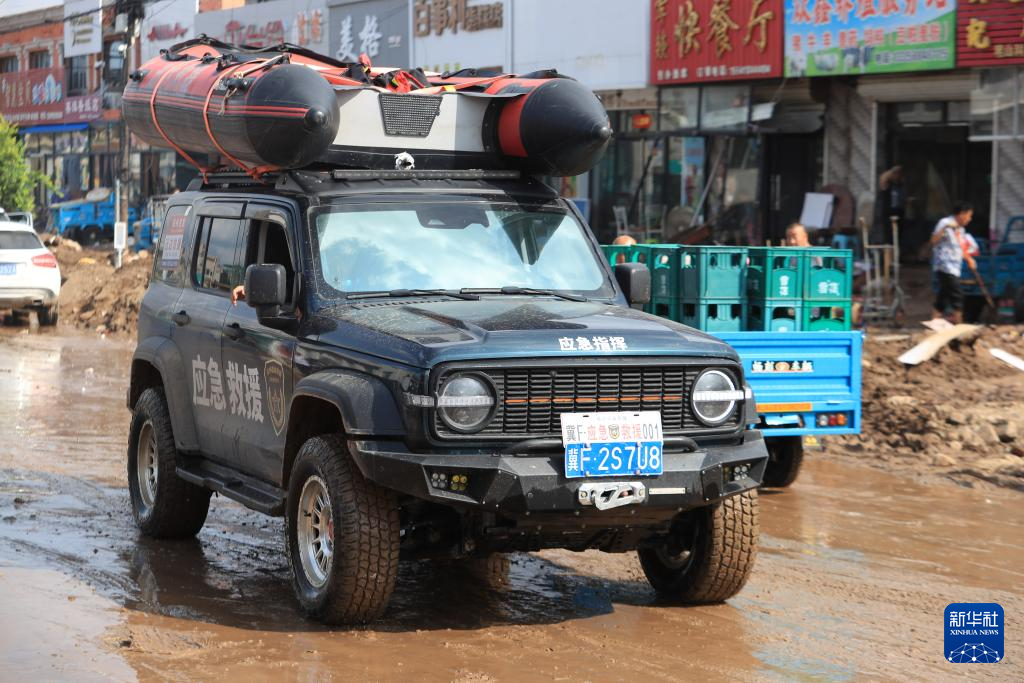 8月21日,在建昌縣黑山科鄉,一輛救援車輛攜帶沖鋒舟行駛在受災區域。新華社記者 楊青 攝pagebreak
