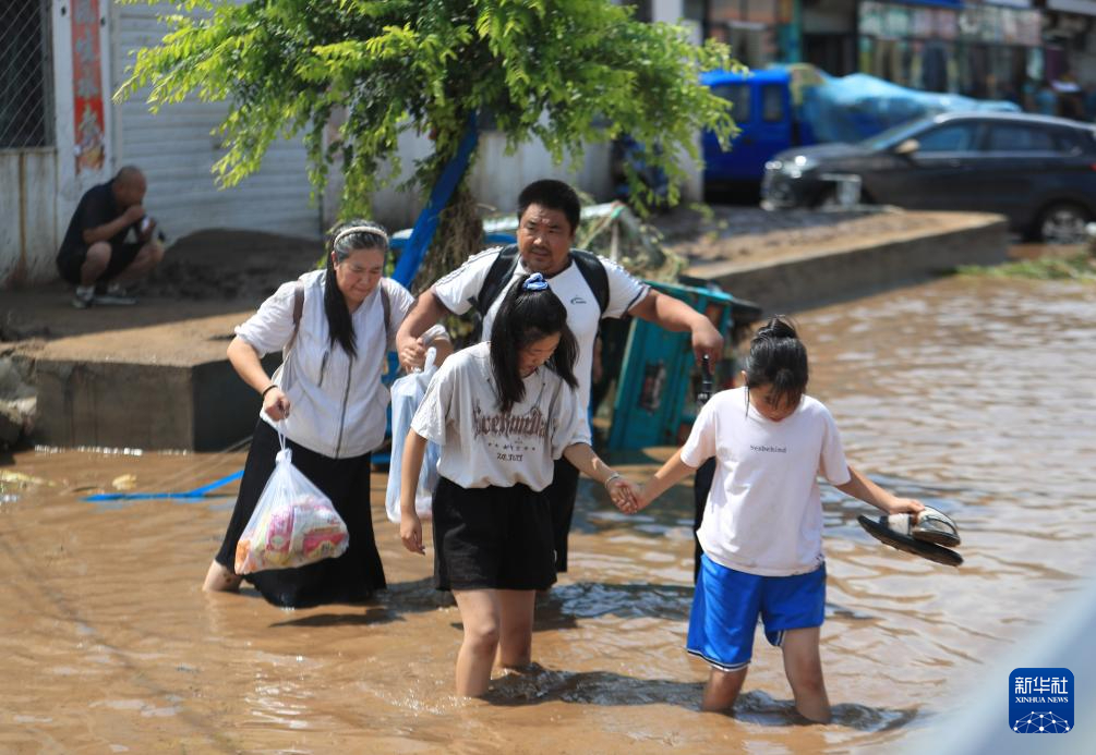 8月21日,在建昌縣黑山科鄉,居民蹚過積水。新華社記者 楊青 攝pagebreak