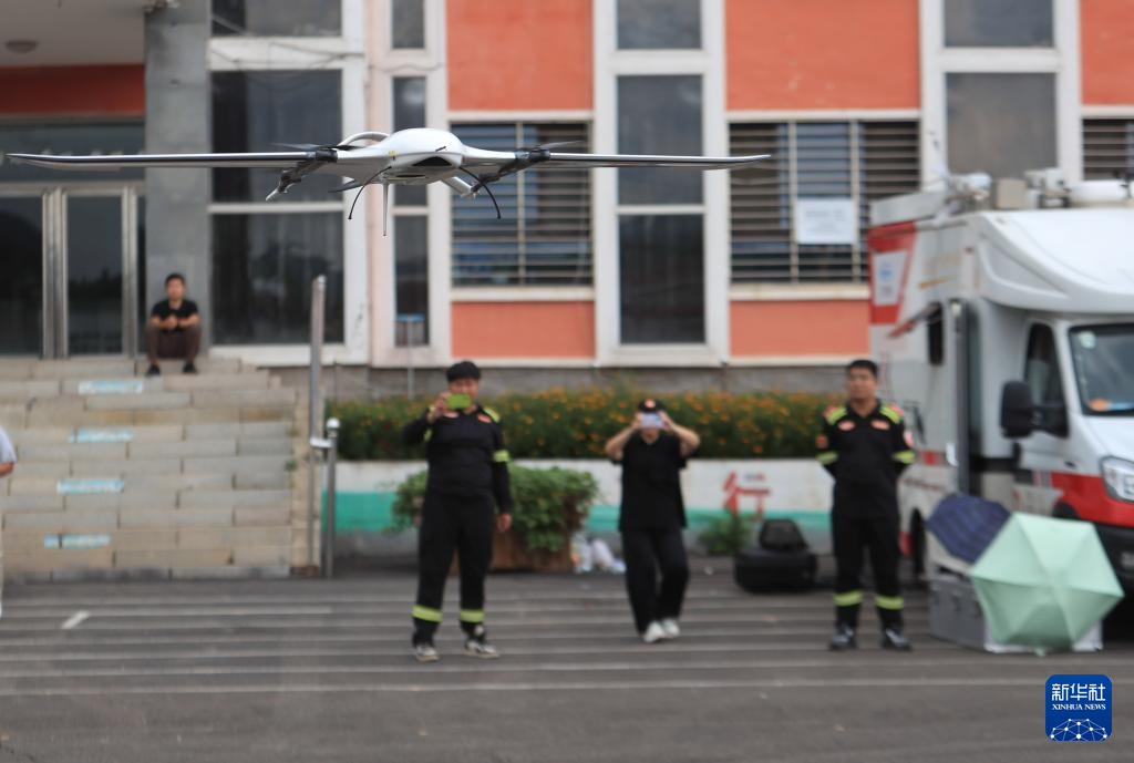 8月21日,在建昌縣黑山科鄉,來自遼寧省航協航空應急救援隊的無人機進行災后數據掃描。新華社記者 楊青 攝pagebreak