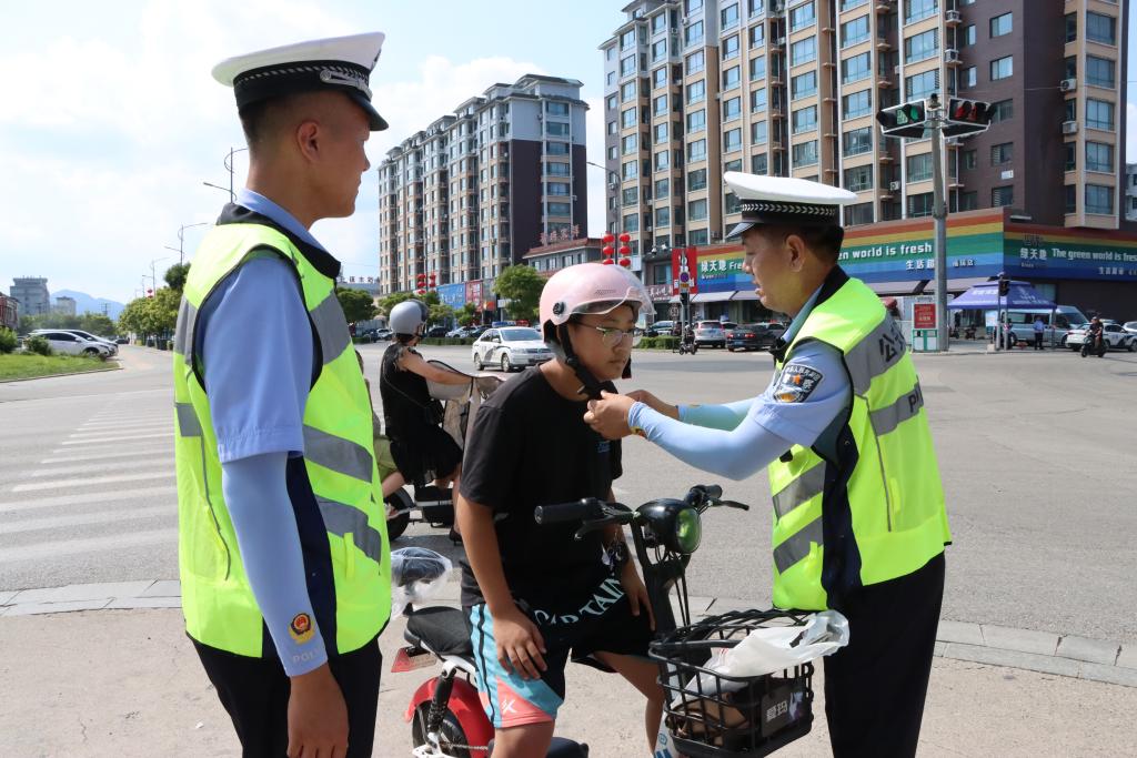 開學前夕,由治安大隊牽頭,屬地派出所配合,對45所中小學再次進行梳理,對一鍵報警、視頻監控、防護裝備進行測試檢查,對學校周邊網吧、旅店等重點場所進行細致排查,對存在的8處安全隱患現場進行整改。北鎮市公安局機關每日增派警力,與交警大隊共同開展頭盔勸導工作,向學生家長發放并簽訂《安全承諾書》3200余份,勸導家長、學生780余人次,全面提升頭盔佩戴率。