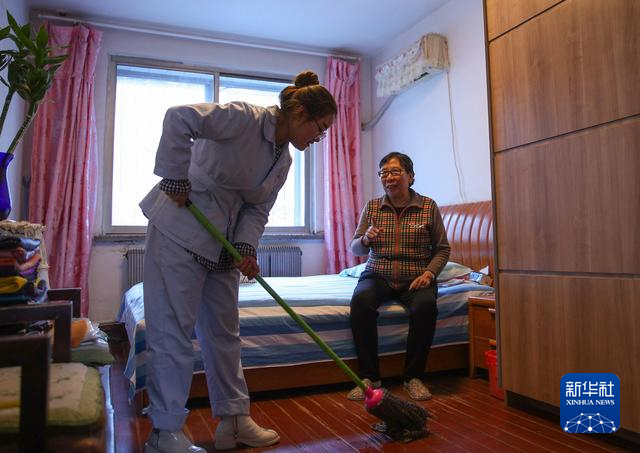 圖為沈陽市和平區文安路社區居家養護中心護理人員幫助社區居民打掃房間。新華社記者 龍雷 攝