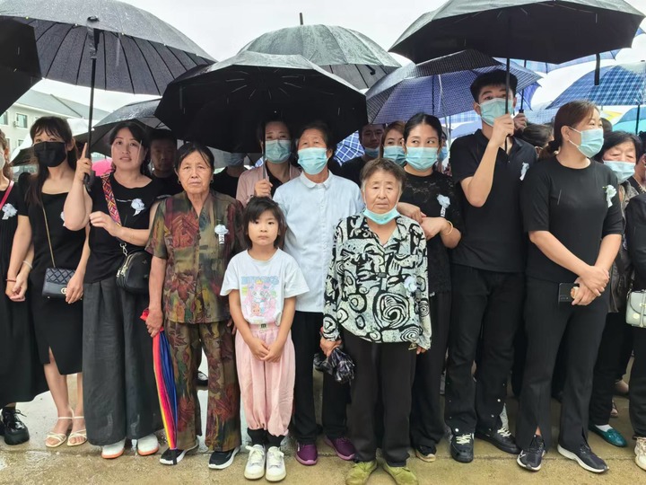 在追悼大廳,臧春英抱著李清學的妻子韓亞利失聲痛哭,連聲喊道:“我沒有保護好李書記??!”作為李清學的妻子,韓亞利此時眼淚已經流干,看著眼前的臧春英,她又怎么能忘記在雨中,在路邊,陪伴丈夫的場景,又怎能忘記數百名村民冒雨默默地守護。