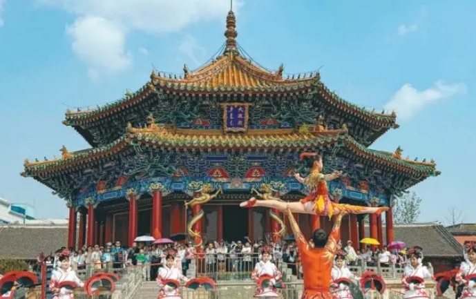 不到10點,沈陽故宮大政殿廣場已是人頭攢動,游客們或手執相機,或肩并肩站立,臉上洋溢著對即將上演的雜技表演的好奇與期待。孩子們更是興奮不已,眼睛瞪得圓溜溜的,生怕錯過任何一個精彩瞬間。