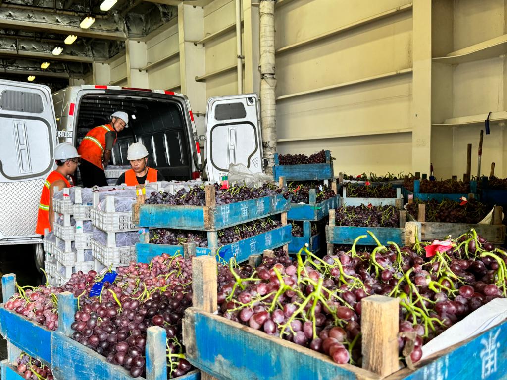 新華網沈陽9月12日電(劉嘉、戴少毅)12日中午,中鐵渤海3號渡船汽車艙內,工作人員小心翼翼地將上萬斤葡萄從貨車車廂搬運至渡船散貨區。煙臺市地處膠東半島,暖溫帶季風氣候賦予其葡萄種植得天獨厚的地理、氣候和土壤優勢,蓬萊作為煙臺市葡萄種植重要區域,產出的葡萄果肉飽滿、色澤艷麗。