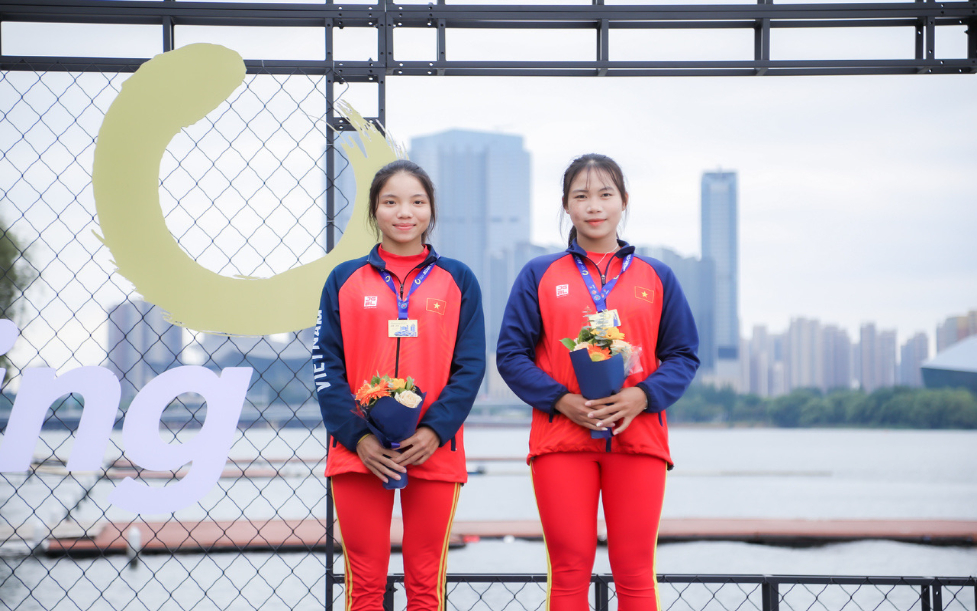2024亞洲青年賽艇錦標賽U19(19歲以下)女子雙人雙槳項目頒獎儀式。