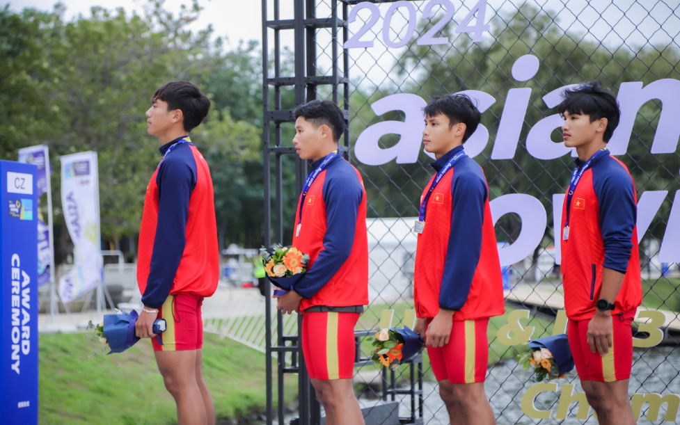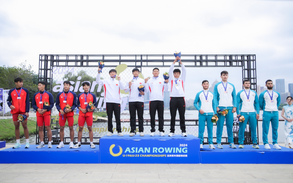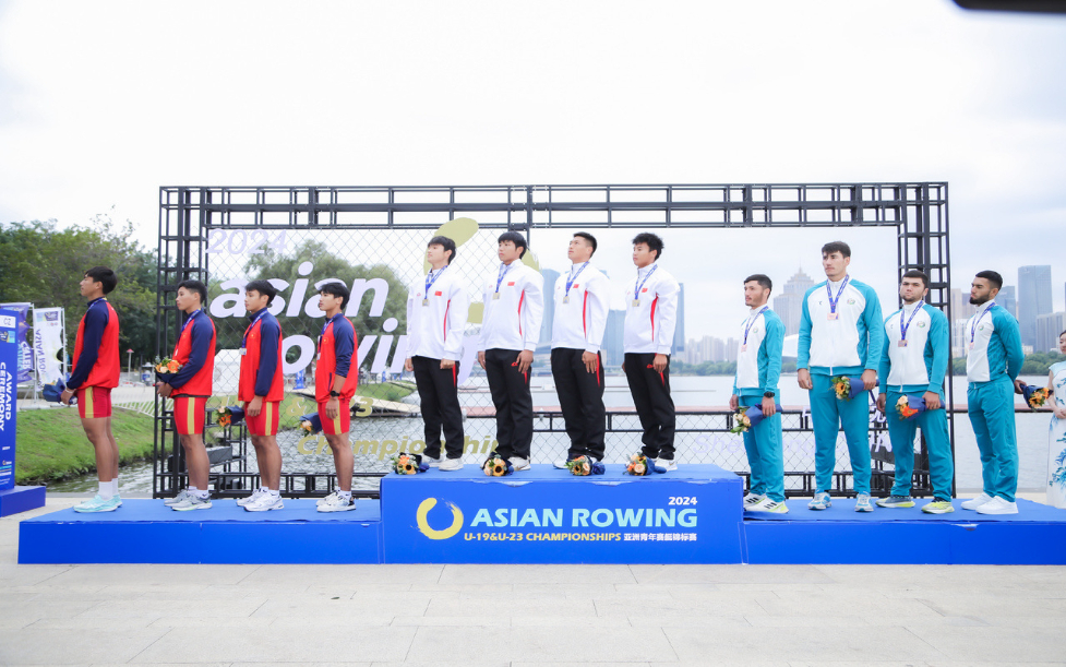2024亞洲青年賽艇錦標賽U23(23歲以下)男子四人雙槳項目頒獎儀式。