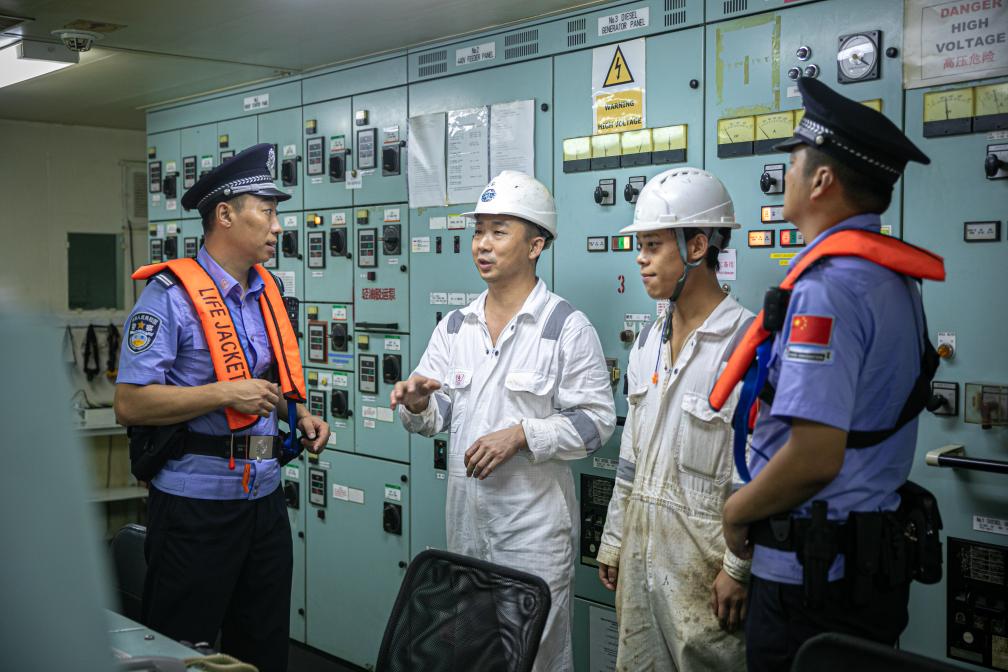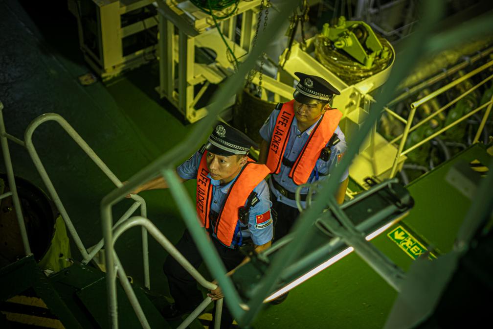 “為了保障國際貨輪24小時靠泊作業,特別是一些趕潮水靠港的船舶,即便是凌晨,我們也必須馬上開展工作?!贝筮B邊檢站綜合執勤七隊副隊長陳超說。