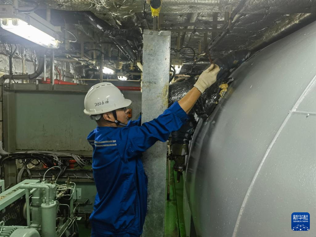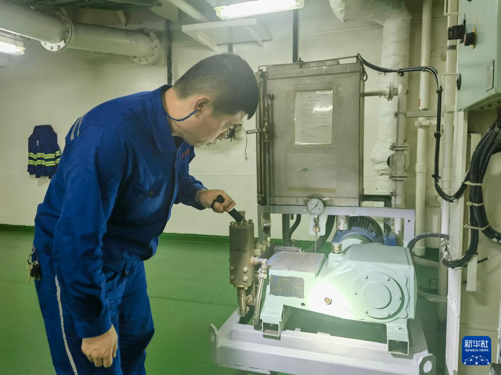 9月26日,工作人員在中鐵渤海號渡船檢查設備運行情況。