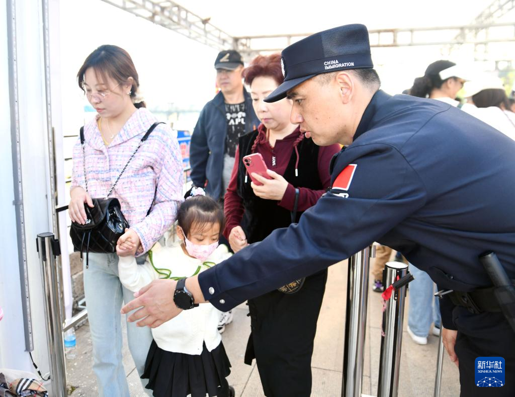 10月3日,丹東邊境管理支隊一經街邊境派出所民警高巖在引導游客。
