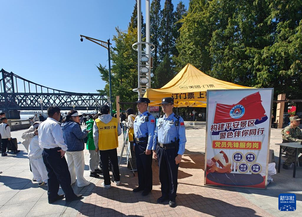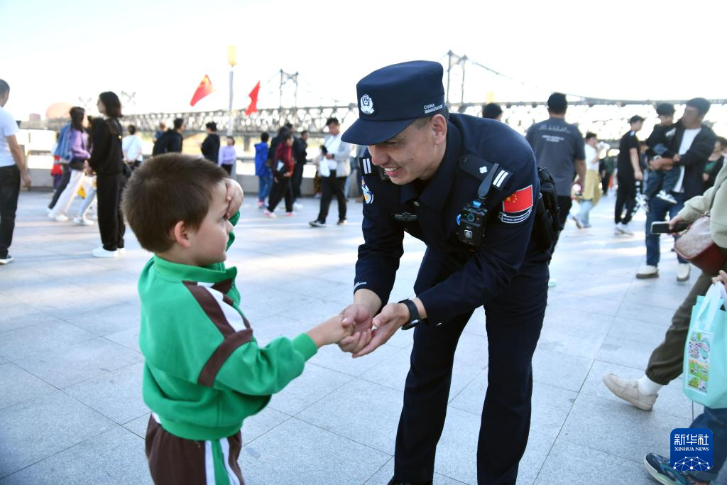 國慶假期,許多游客來到遼寧省丹東市鴨綠江畔觀光游覽,丹東邊境管理支隊一經街邊境派出所民警通過增設“黨員先鋒服務崗”、提高巡邏次數等方式為游客營造安全、愉快的出游環境。