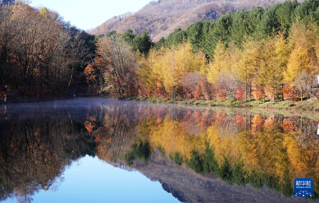 遼寧本溪的大石湖風景區的金秋景色(10月16日攝)。