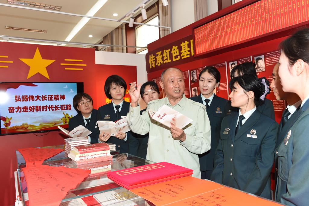 授課完畢,胡世宗將新出版的長征題材作品《延伸,我們的路》進行簽名贈送。