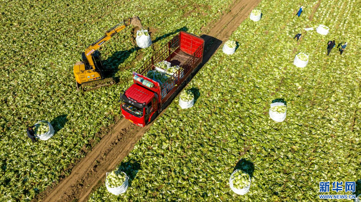 走進沈陽新民市大白菜種植基地,連片的大白菜葉片肥厚、翠綠鮮嫩,長勢喜人??巢?、去廢葉、搬運、裝車……田地里,農民們忙著采收,呈現出熱火朝天的豐收場景。