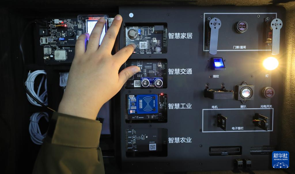 11月22日,沈陽工學院通信工程專業學生操作鴻蒙智聯場景應用實訓設備。