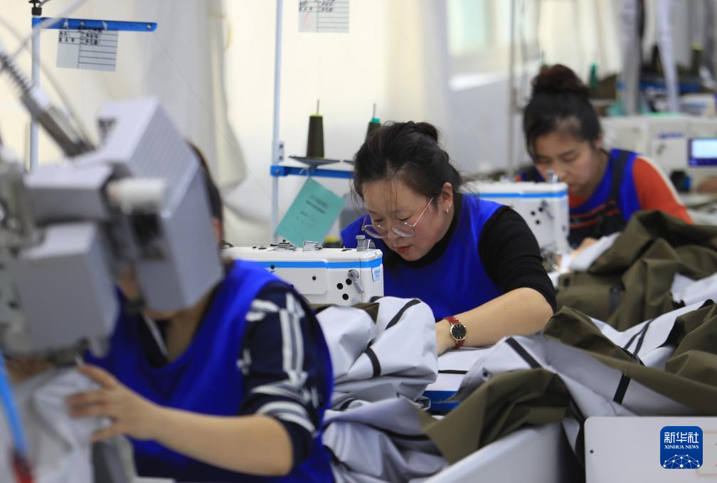 在遼寧飛馬特實業有限公司,工作人員在對沖鋒衣進行出廠檢查(11月15日攝)。